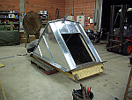 Dieses Bild zeigt eine in unseren Räumen gerade fertiggestellte Gaube mit Zinkverkleidung in Stehfalztechnik. Die Gaube wird anschließen fertig ins Dach eingebaut.