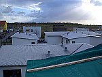 Siedlung in Hannover, Am Kronsberg. Eingedeckt mit verzinkten Trapezblechprofilen in der Farbe Alu/Zink.